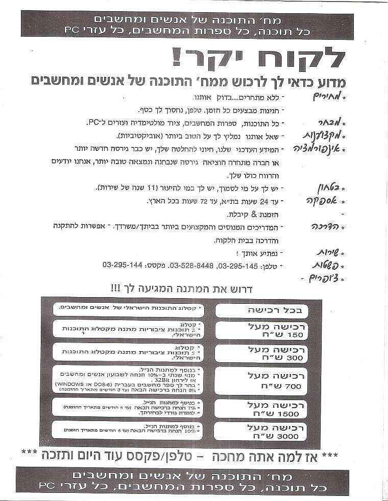 קטלוגים ופרסומות - קטלוג "אנשים ומחשבים" - שנת 1993