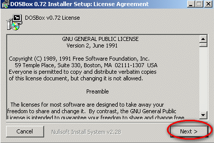 הצעד הבא, לאחר הורדת DOSBox, הוא, כמובן, להתקין את התוכנה.